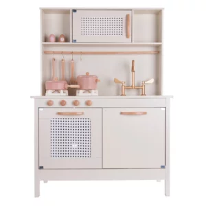 A COZINHA MODALI BABY GANHOU UM NOVO DESIGN COM INSPIRAÇÕES RETRO TEMOS UMA TORNEIRA DOURADA.