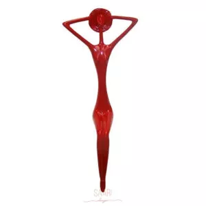 Escultura feita em resina na fisionomia de uma mulher longilínea sentada